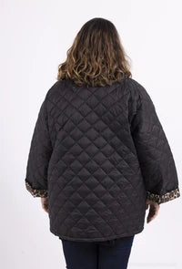 Doudoune matelassée à boutons & revers léopard (non réversible). 2 poches plaquées à l’avant.